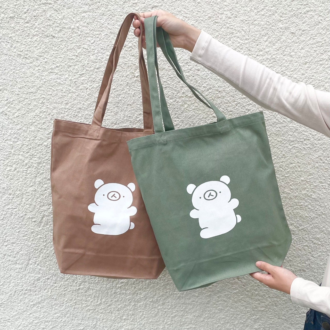 落ち着いたカラーのちーくまトートバッグ。