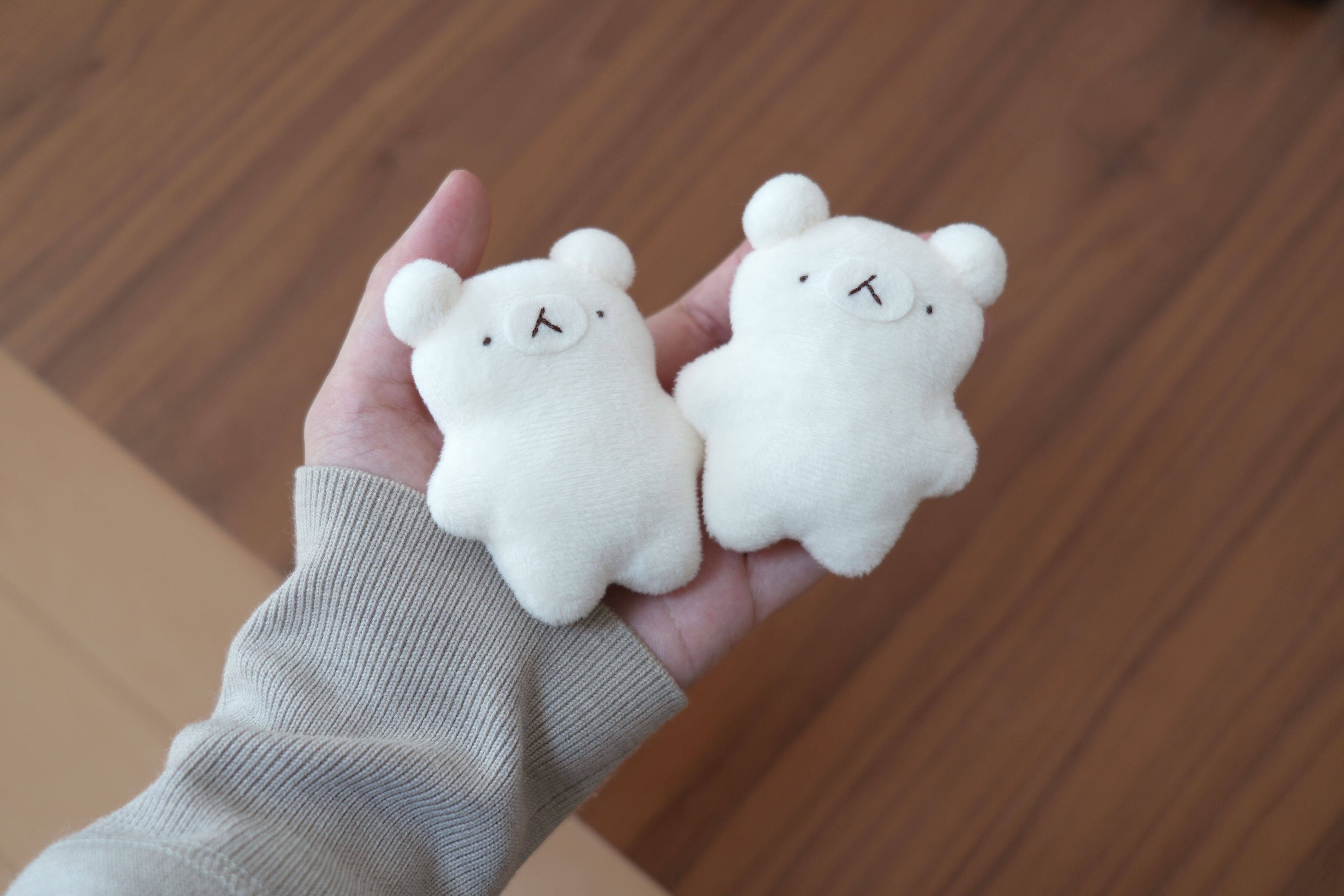 おでかけに連れて行きやすい手のひらサイズのちーくまぷちぬいぐるみ。